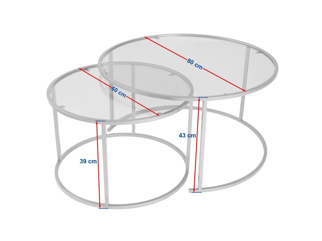 Sada obsahuje malý stolík s rozmermi 60 cm x 39 cm x 60 cm a väčší stolík s rozmermi 80 cm x 43 cm x 80 cm, ktoré poskytujú dostatok. Či už máte malý byt alebo priestrannú obývaciu izbu, táto sada je perfektným doplnkom do každého domova. mm