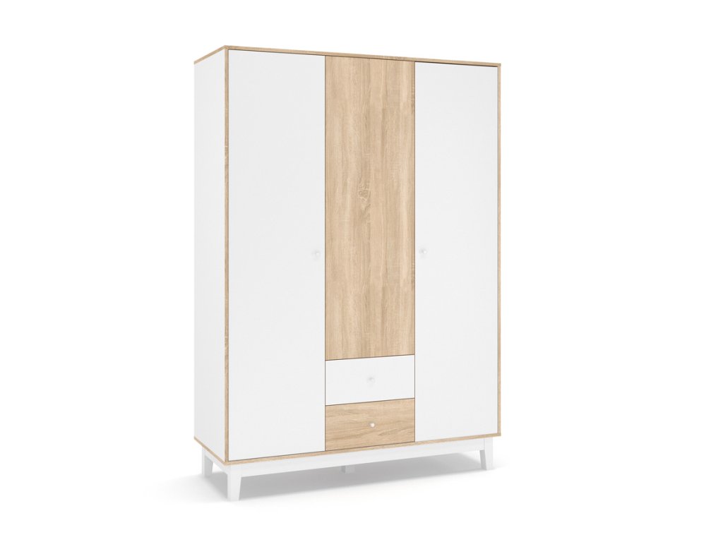 Šatníková 3dverová skriňa AXEL, dub samoa/biela