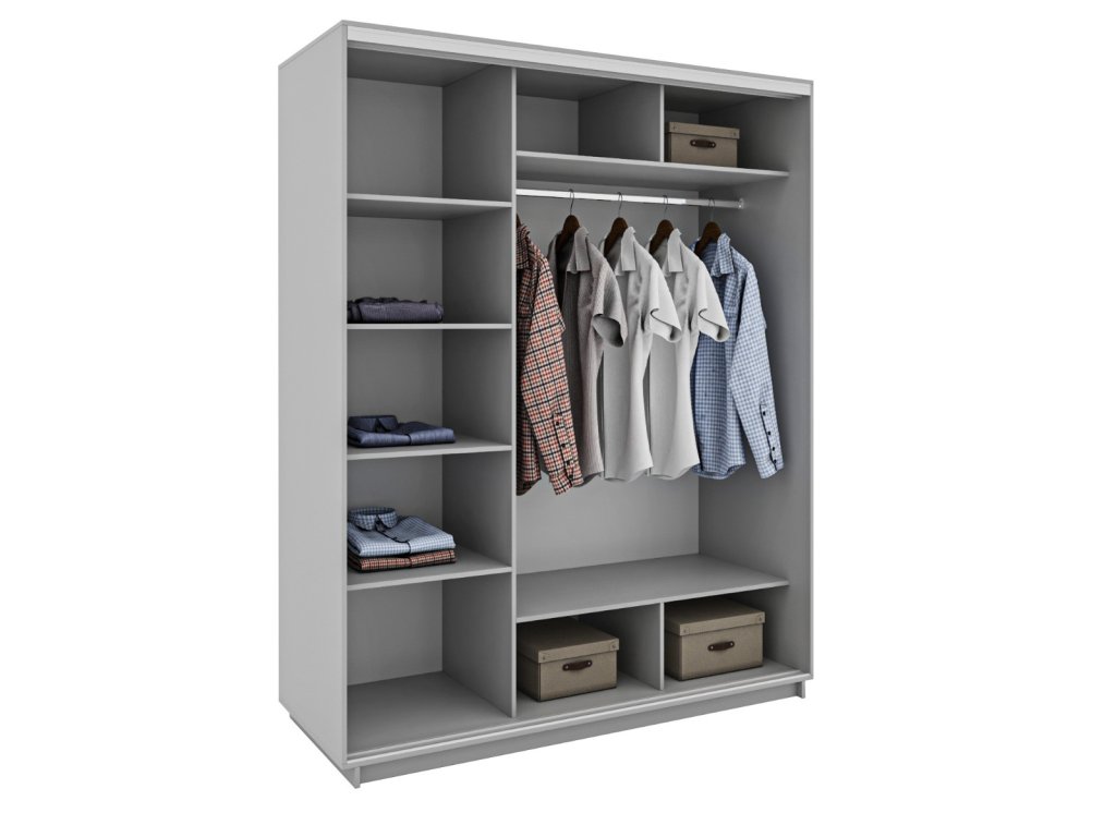 Šatníková skriňa má netypickú výšku, až 220 cm, čím sa zaistí väčší úložný priestor. Skriňa je členená na policovú a závesnú časť s jednou závesnou tyčou.
