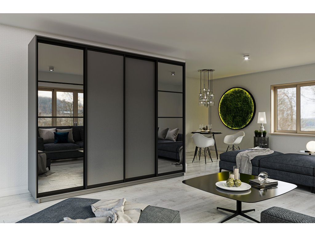 LUCASIE je štvordverová moderná šatníková skriňa, ktorá je charakteristická praktickým úložným priestorom. Skriňa disponuje posuvnými dverami. Je vo farebnom prevedení grafit.