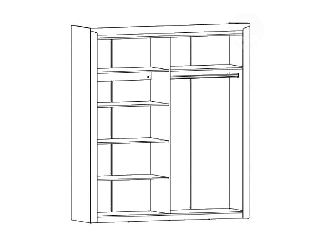 Vnútri sú po ľavej strane štyri police, vpravo je jedna polica a šatníková tyč.