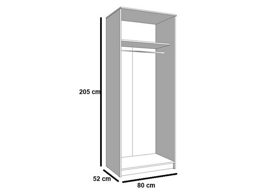 EASY je jednoduchá dvojdverová šatníková skriňa, ktorá sa vďaka svojim rozmerom zmestí aj do malých priestorov. Vnútorné rozloženie ponúka jednu policu a závesnú tyč. Vďaka výške 205 cm získate dostatok úložného priestoru. Je vyrobená z kvalitnej LTD dosky.