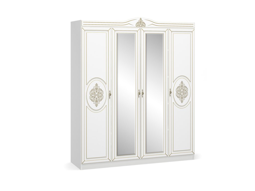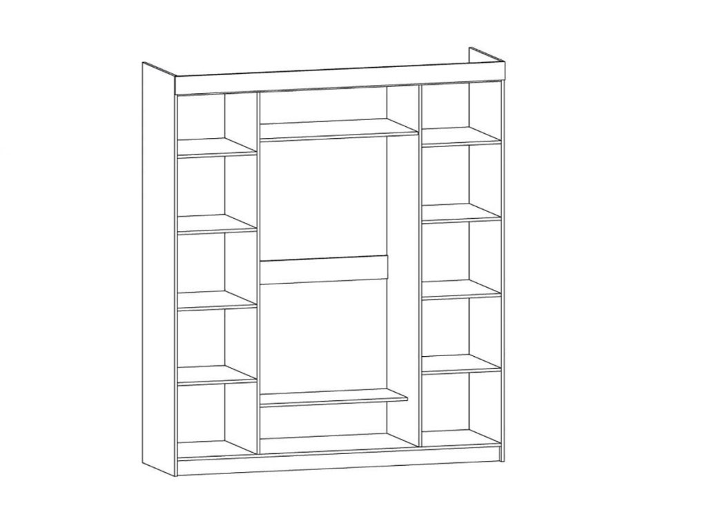 Šatníková skriňa je štvordverová. Vo vnútornej časti sa nachádza celkom 10 praktických políc (viď. obrázok vnútra skrine). Na stredných dvoch dverách je priestranné zrkadlo.