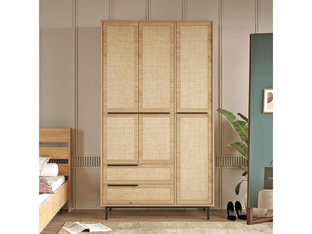 Šatníková skriňa na nožičkách LONNY 15, sepet / jutový vzor