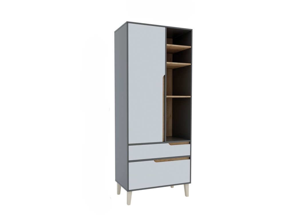 Šatníková skriňa DOOWE NO1 ponúka bohatý úložný priestor v podobe dvoch zásuviek, otvoreného regálu a políc za dvierkami. Je ideálny do študentských izieb, obývacej izby alebo spálne.