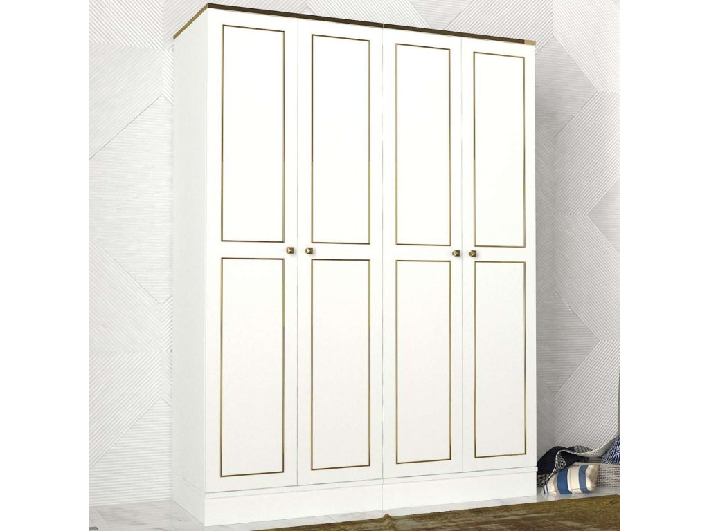 Šatníková skriňa RAVEN 4D vyniká svojim elegantným dizajnom v bielej farbe, ktorý dodá vašej spálni svieži a moderný vzhľad. Praktické vnútorné usporiadanie s dvoma šatníkovými tyčami a tromi policami ponúka dostatok úložného priestoru pre vaše oblečenie a ďalšie predmety.