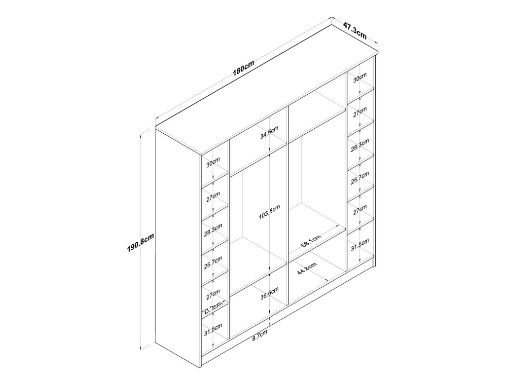 - Rozmery: 190,8 x 180 x 47,3 cm – vysoká a priestranná konštrukcia.