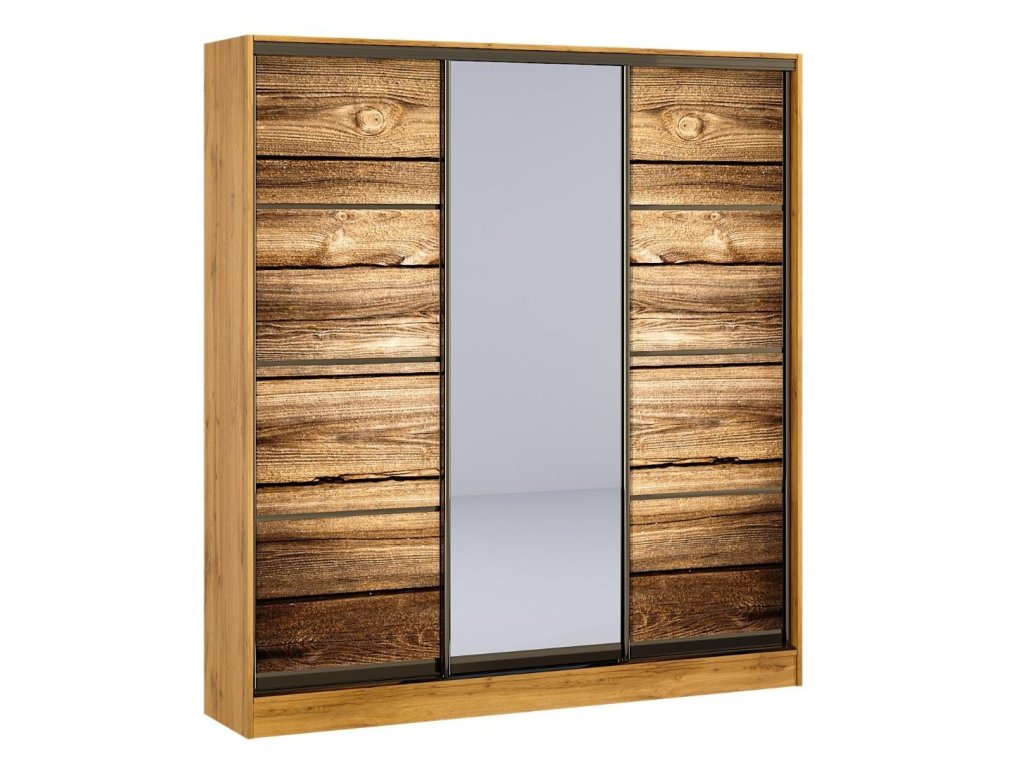 Šatníková skriňa s posuv. dverami 250 VIENE, dub apalačský/zrkadlo