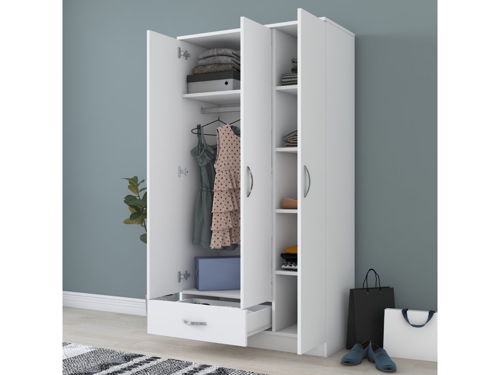 Šatníková skriňa so šuplíkom LOIS, biela
