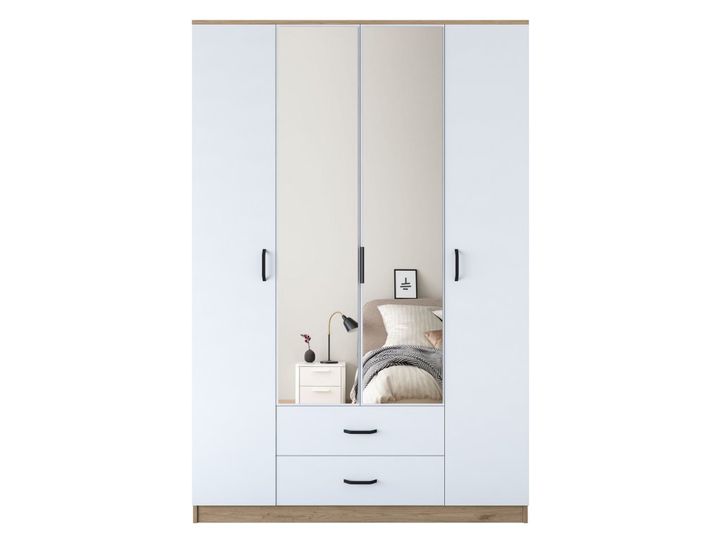 Šatníková skriňa LINE ponúka všetko potrebné pre prehľadné usporiadanie vášho oblečenia a doplnkov. Obsahuje dve zásuvky pre menšie predmety, šatníková tyč na zavesenie oblečenia a veľké zrkadlo, ktoré opticky zväčšia priestor a dodá vašej spálni moderný nádych.