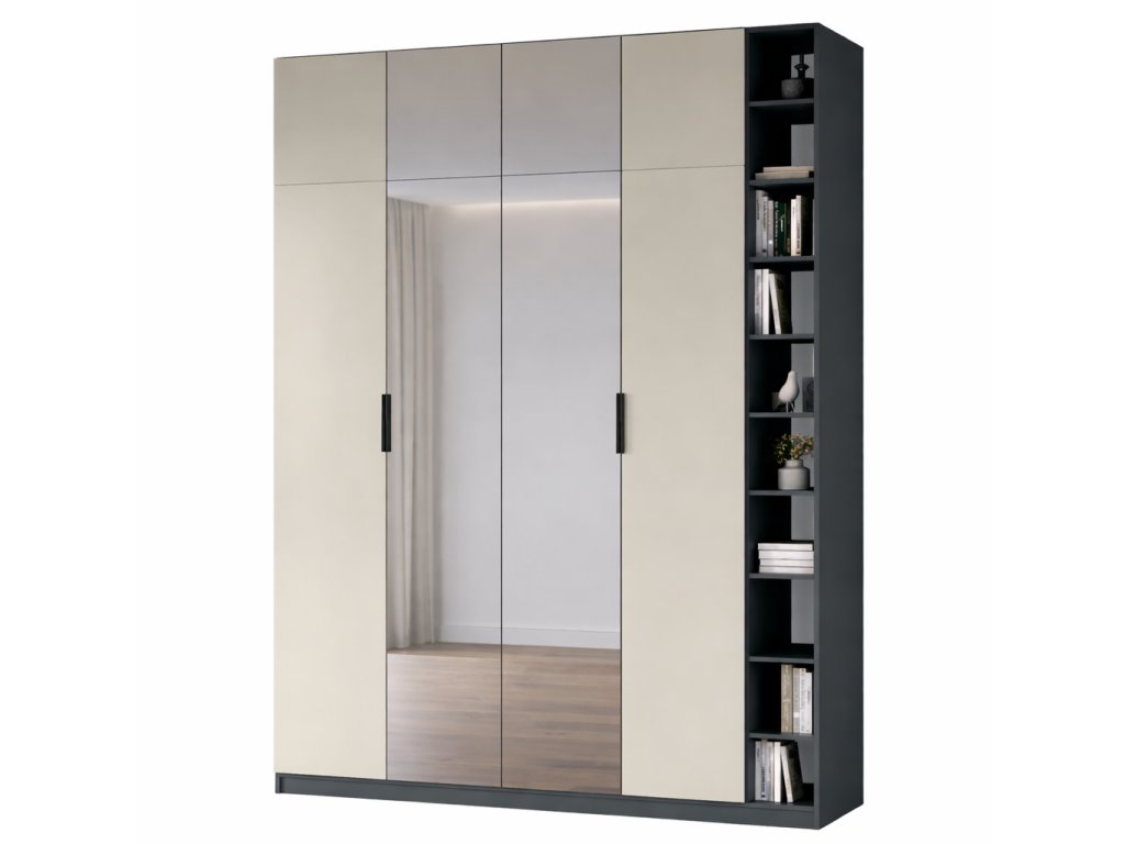 Šatníková skriňa so zrkadlom TOM, antracit / kašmír