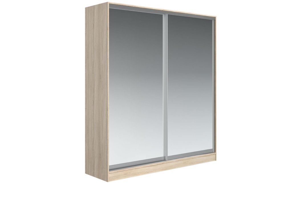 Šatníková skriňa VENA je vďaka zrkadlovým dverám veľmi elegantným prvkom každej modernej spálne. Má posuvné dvere, je vyrobená z kvalitnej 16 mm hrubej LTD dosky. V pravej časti sú štyri police, vľavo je šatníková tyč, nad ktorou je ďalšia polica.