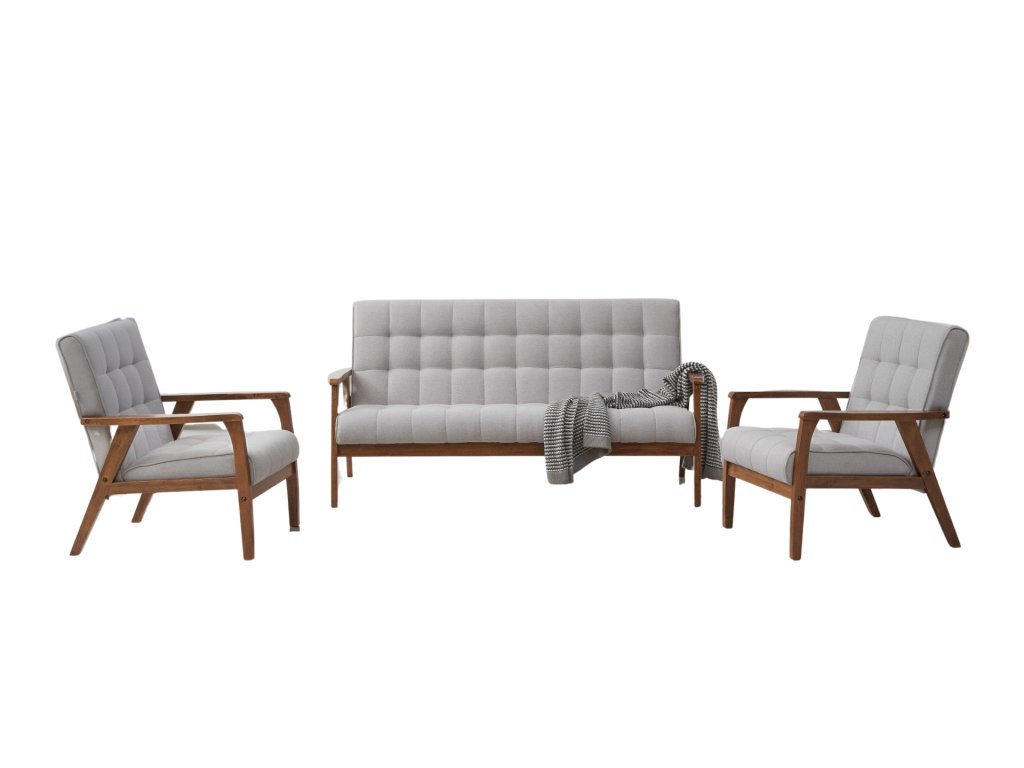 Sedacia súprava PETRONELA II v žiadanom retro štýle osloví svojim jednoduchým prevedením. Konštrukcia sedacej súpravy je vyrobená z masívu vo farbenom odtieni orech. Čalúnené časti sú v látke vo farebnom prevedení šedá. Výrazné prešívanie sedacej a opierkovej časti dodáva nábytku atraktívny vzhľad. Pohodlné sedenie zaručuje PUR pena s pružnými čalunickými pásmi. Výška sedu je 40 cm a hĺbka sedu je 52 cm. Výška podrúčok je vo vyššom bode 53 cm a v nižšom bode 51 cm.. Súčasťou zostavy je trojsedák a 2 kreslá. Rozmery trojsedáku: š/h/v 162 x 75 x 81 cm. Rozmery kresla (š/h/v): 65 x 75 x 81 cm. Trojsedák aj kreslo je možné doobjednať aj samostatne. Dodávame v demontovanom stave.Dodatočné parametre