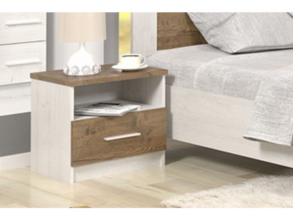 Nočné stolíky REBEKA sú súčasťou štýlového sektora s jemnými líniami REBEKA. Kombinácia farieb borovice andersen a apríl apríl vám vytvorí príjemnú atmosféru pre pokojný odpočinok a relaxáciu. Sú vyrobené z vysoko kvalitného LTD materiálu s ABS hranami, ktoré sú nenáročné na údržbu. Eleganciu im dodávajú úchyty striebornej farby. Stolíky sú dva. Disponujú jednou zásuvkou a otvorenou policou. Farebné prevedenie borovice andersen, apríl apríl. Rozmery 1 stolíka: - výška: 45,5 cm, - šírka: 51 cm, - hĺbka: 37 cm. Dodávame v demontovanom stave.Dodatočné parametre