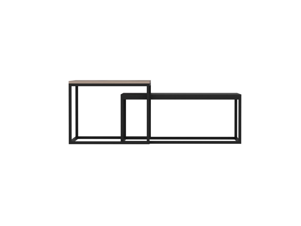 Set konferenčných stolíkov NATE prináša dokonalú kombináciu elegancie a funkčnosti. Sada obsahuje dva obdĺžnikové stolíky rôznych veľkostí, ktoré sa skvele dopĺňajú. Vďaka modernej farebnej kombinácii orech a čierna s kovovými nohami sa tieto stolíky stanú štýlovým doplnkom každej obývacej izby.