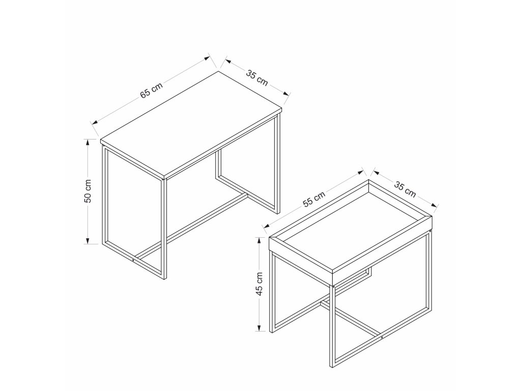 | Zostava obsahuje: | 2x konferenčný stolík – väčší 65x35x50 cm, menší má hornú dosku s okrajmi |