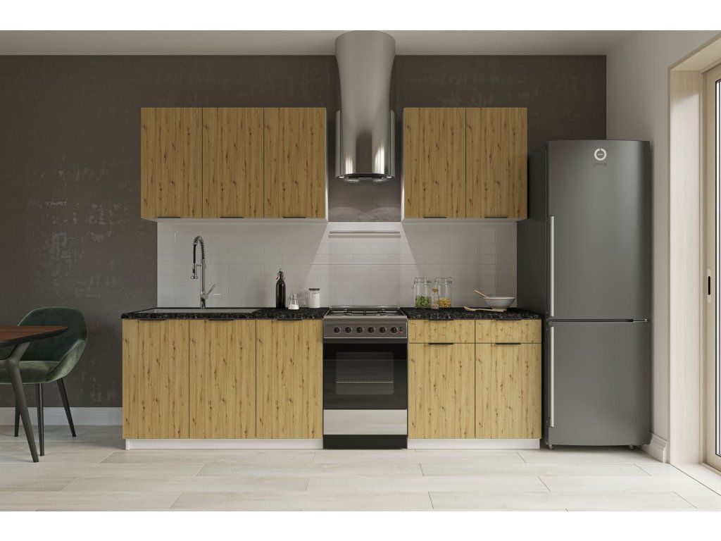 SILVER jednoduchá kuchynská linka 200 cm, dub artisan