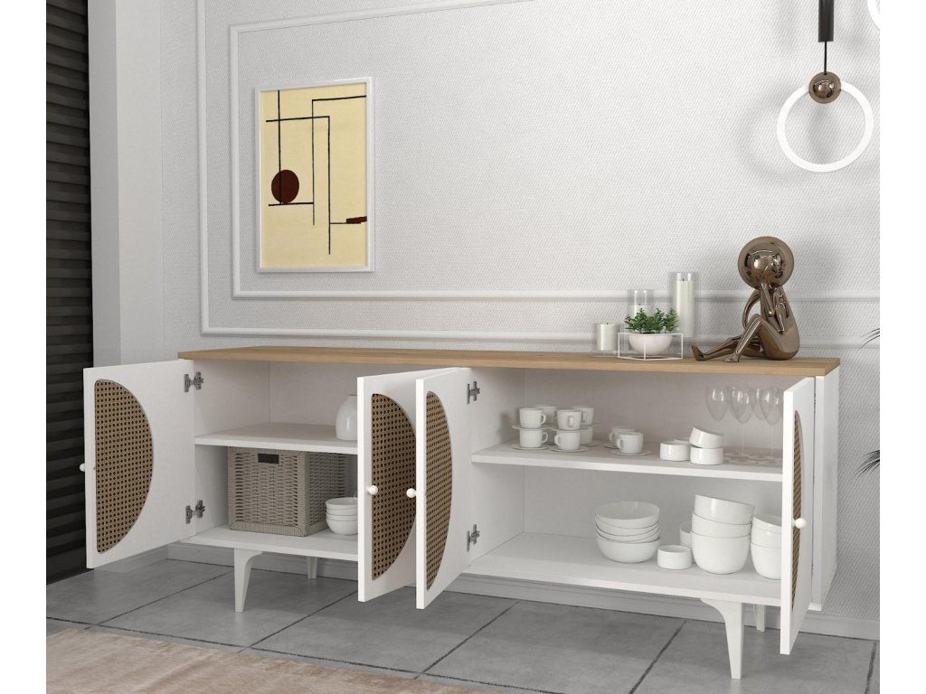 Vďaka svojmu širokému vzhľadu a vybaveniu štyrmi dvierkami poskytuje komoda KEBAB 180 dostatok úložného priestoru pre vaše veci. Dodávame v demonte, čo zaručuje bezpečnú prepravu a jednoduchú montáž. Pridajte do svojho domova tento jedinečný a praktický kúsok nábytku a užívajte si jeho výhody každý deň.