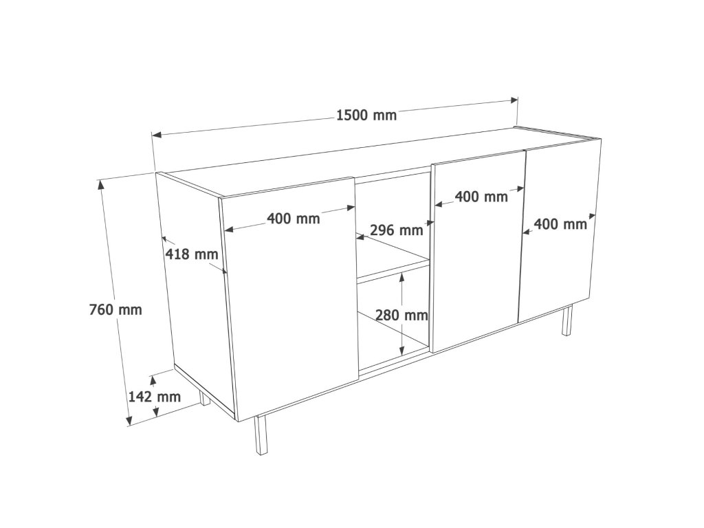- Rozmery: 76 x 150 x 41,8 cm