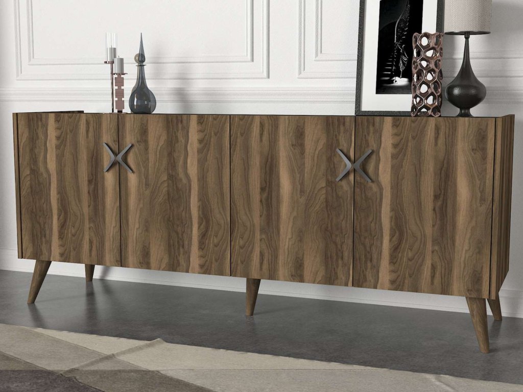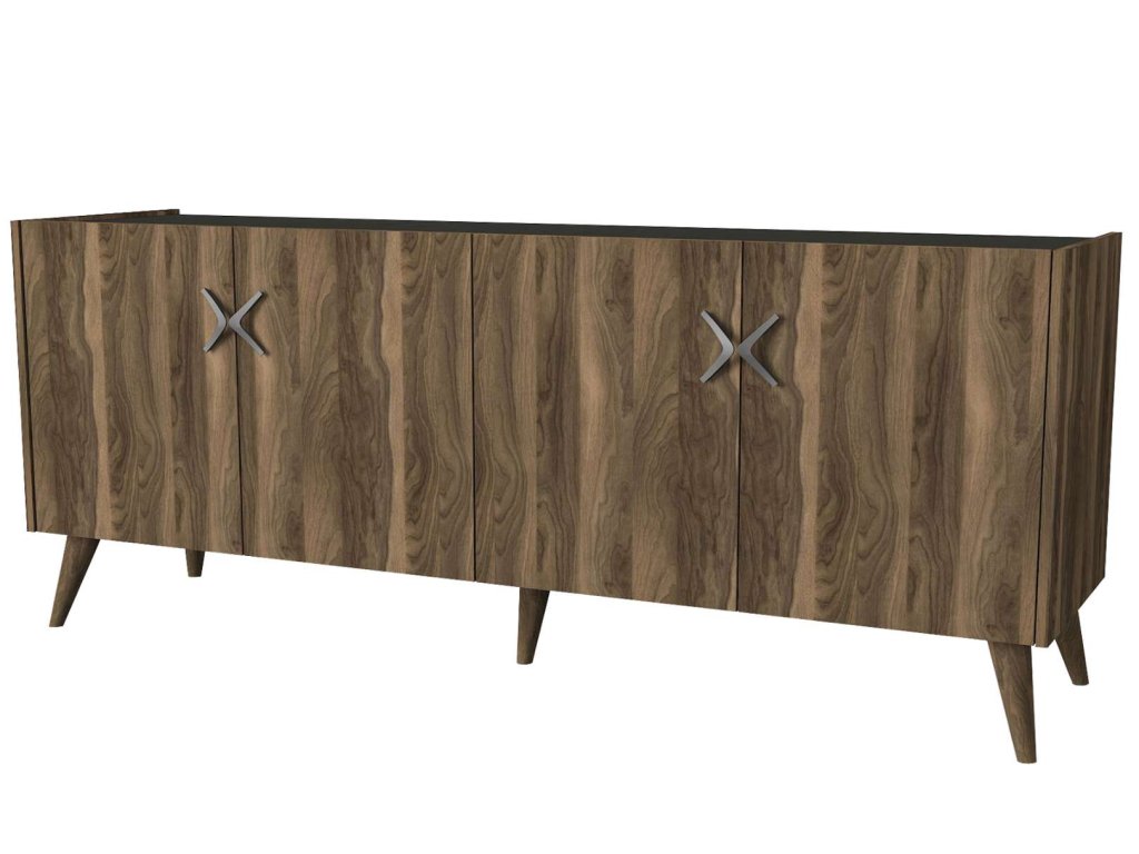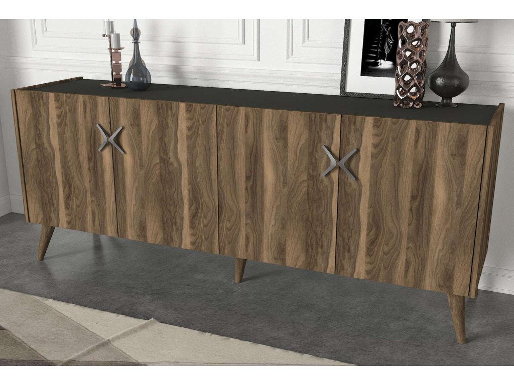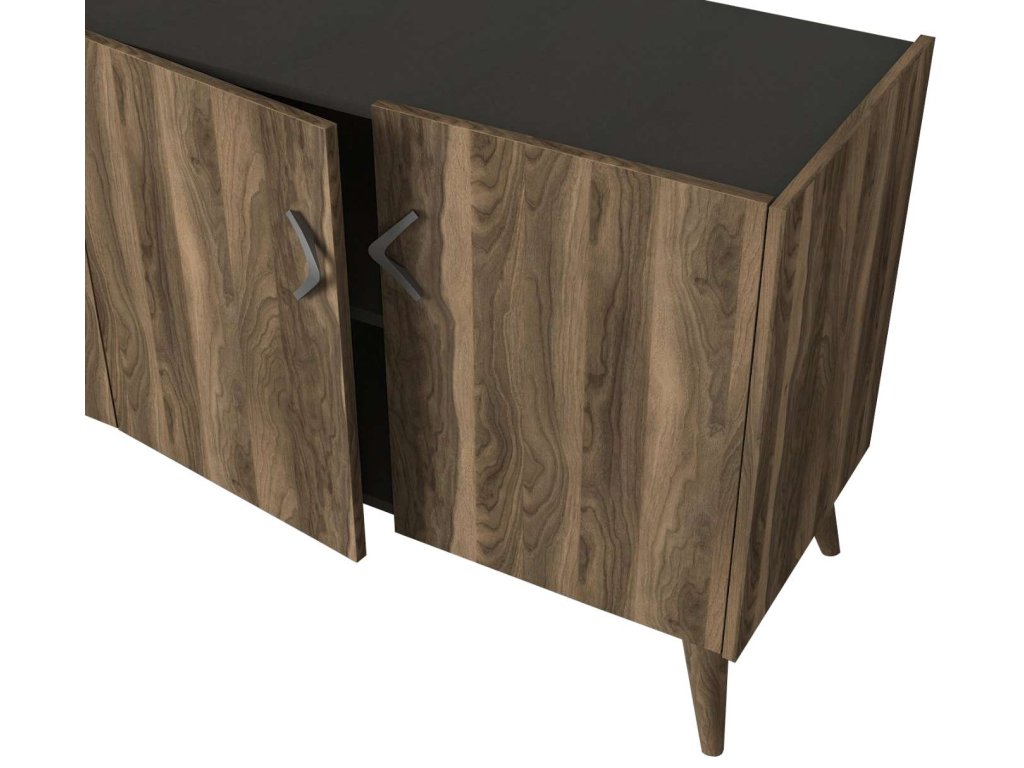 Komoda TREE je vyrobená z kvalitného LTD materiálu s hrúbkou 18 mm, čo zaisťuje jej pevnosť a dlhú životnosť. Elegantná kombinácia orechového dekoru a antracitovej farby dodáva komode moderný a sofistikovaný vzhľad, ktorý sa hodí do akéhokoľvek interiéru. Komoda je vybavená štyrmi dvierkami, ktoré poskytujú dostatok úložného priestoru pre vaše potreby.