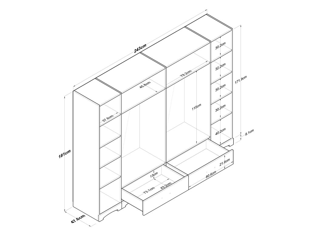 - Rozmery: 181 x 243 x 47,6 cm – široká a priestranná, ideálna pre organizáciu vášho šatníka.