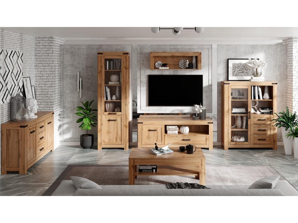 Široká vitrína MARIETTA, dub Wotan