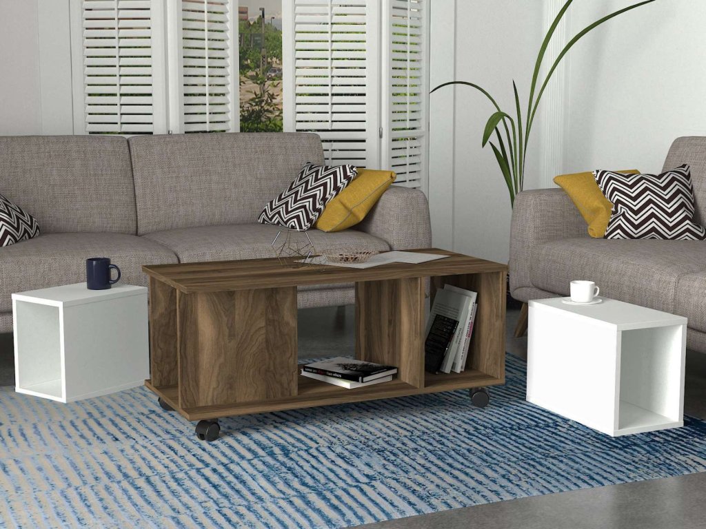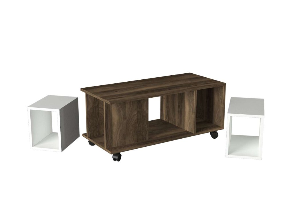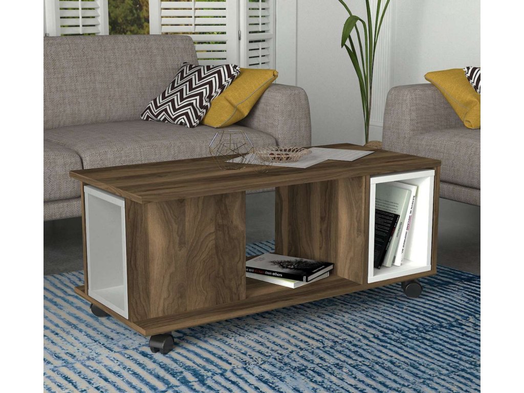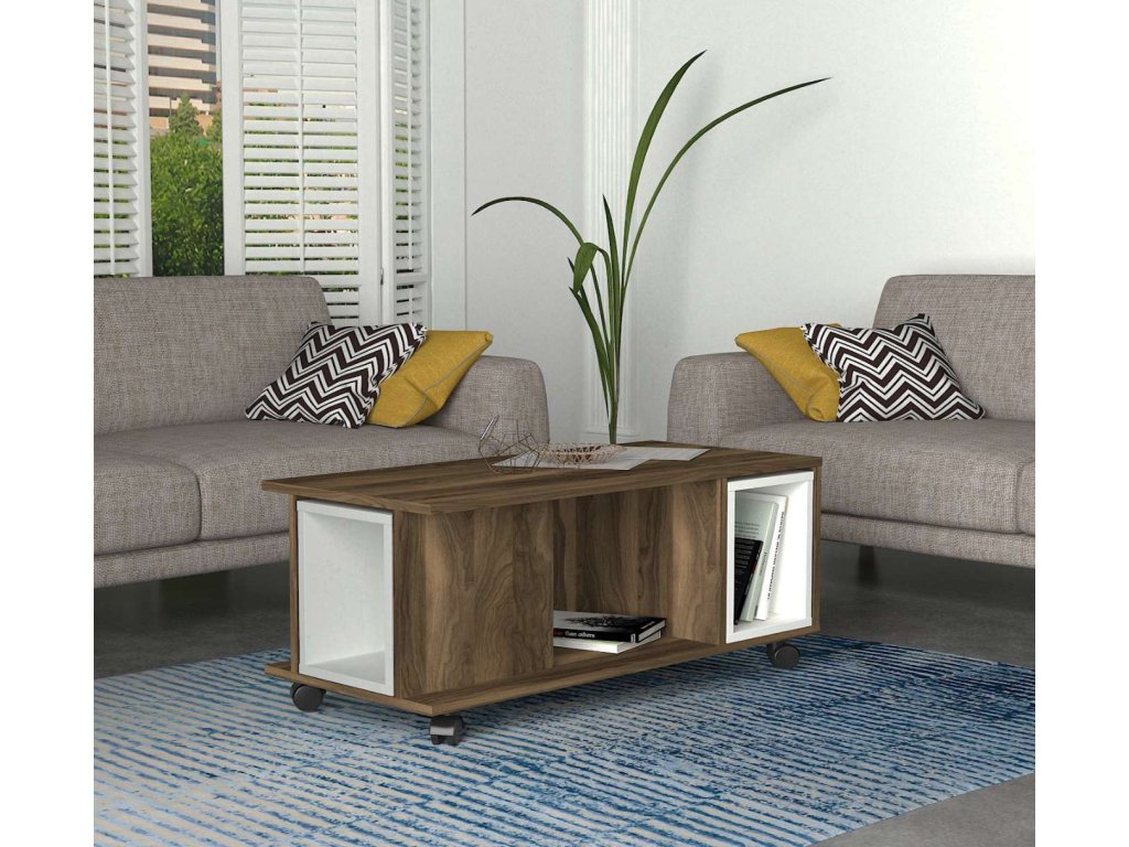 Stolík SALEM sa pýši elegantnou kombináciou bielej a orechovej farby, ktorá dodá vašej obývačke moderný a štýlový vzhľad. Jeho široký obdĺžnikový tvar poskytuje dostatok priestoru na vaše dekorácie, nápoje a ďalšie predmety.