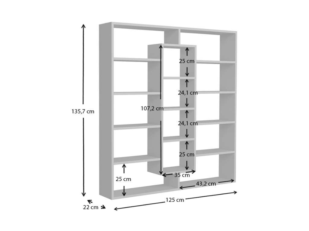 Regál SAMPLE vyniká svojim moderným dizajnom a praktickým usporiadaním, ktoré je ideálne na skladovanie kníh, dekorácií alebo kancelárskych potrieb. Štyri pevné police poskytujú dostatok úložného priestoru a robustný LTD materiál s hrúbkou 18 mm zaisťuje dlhú životnosť a stabilitu tohto regálu.