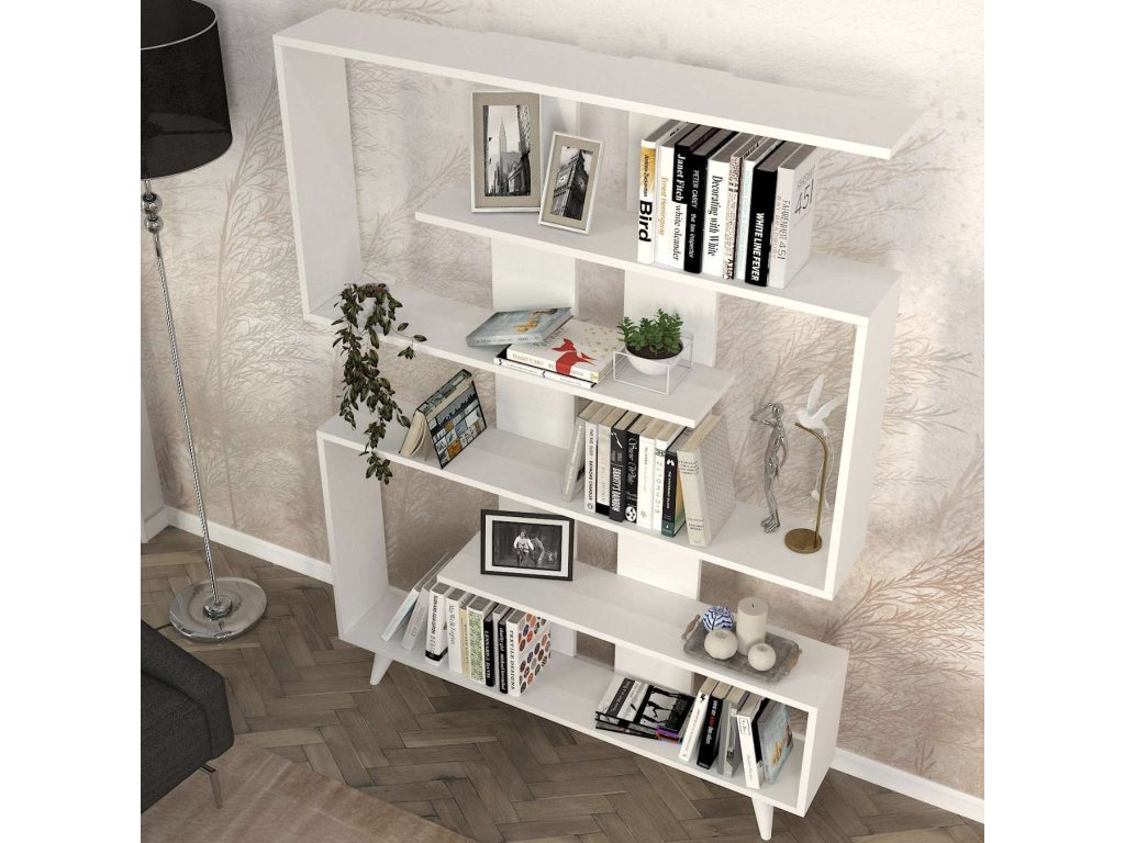 Regál TRAIN sa pýši svojim čistým bielym dizajnom a praktickým usporiadaním, ktoré je ideálne na skladovanie kníh, dekorácií alebo kancelárskych potrieb. Štyri pevné police poskytujú dostatok úložného priestoru a robustný LTD materiál s hrúbkou 18 mm zaisťuje dlhú životnosť a stabilitu.