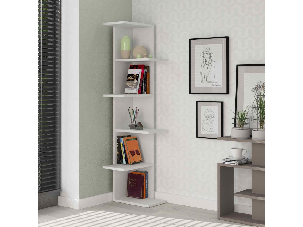 Regál YAGO je inšpirovaný škandinávskym štýlom, ktorý kladie dôraz na jednoduchosť, funkčnosť a prirodzenú krásu. Čistá biela farba dodáva priestoru sviežosť a vzdušnosť, zatiaľ čo rohový tvar optimalizuje využitie priestoru vo vašej obývačke. Štyri priestranné police ponúkajú dostatok miesta na knihy, dekorácie či rastliny.