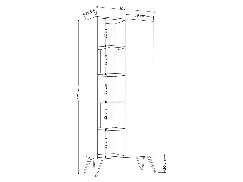 - Policy a skrinka: Päť priestranných políc a jedny plné dvierka ponúkajú skvelú kombináciu úložného priestoru a dizajnu.