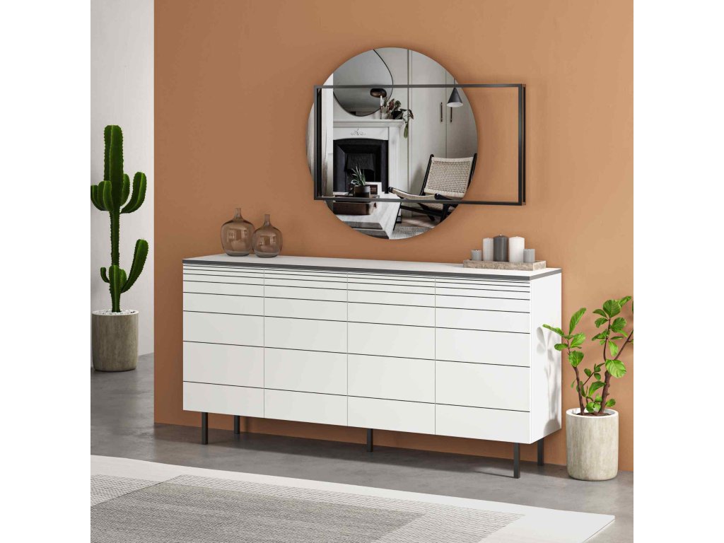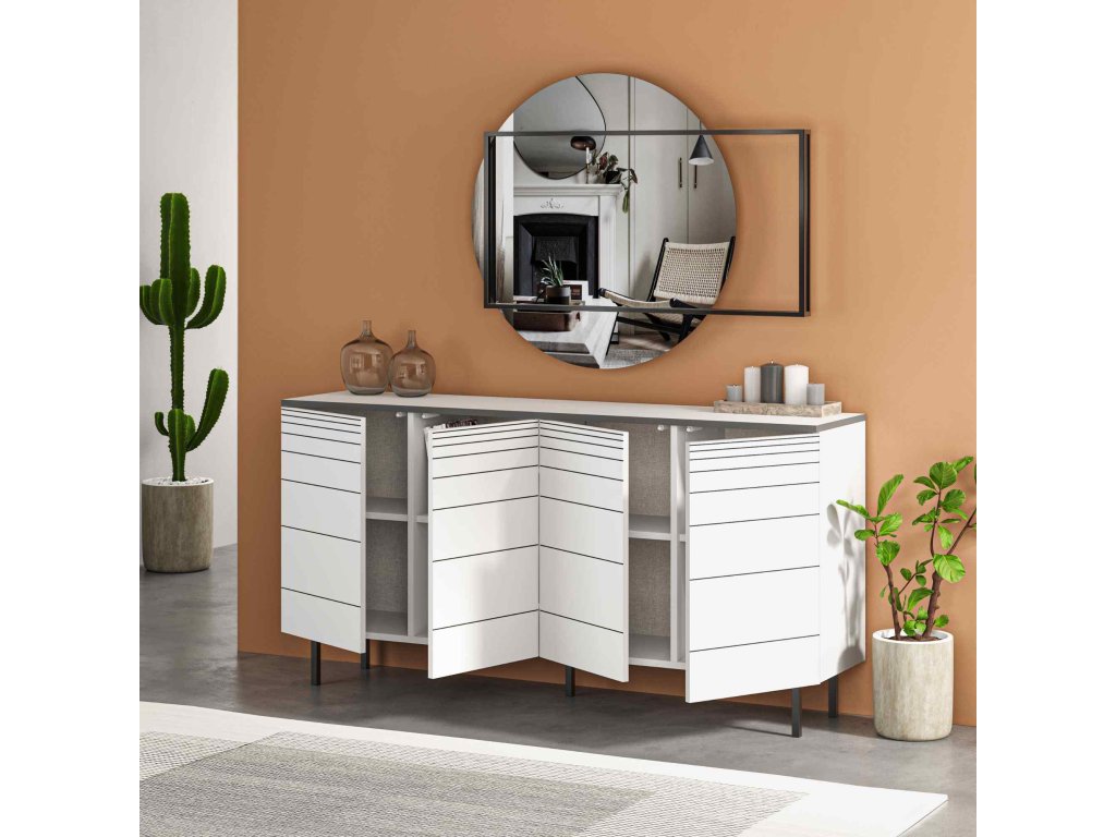 - Vybavenie: Štyri plné dvierka poskytujú dostatok úložného priestoru, skrývajúc vaše veci a udržujúc interiér v čistote.