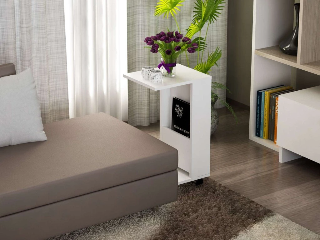 Stolík EPITAF sa pýši svojim čistým bielym prevedením a obdĺžnikovým tvarom, ktorý je nielen praktický, ale aj vizuálne príťažlivý. Vďaka odkladacej polici a regálku poskytuje dostatok úložného priestoru pre vaše knihy, časopisy či dekorácie. Robustný LTD materiál s hrúbkou 18 mm zaisťuje dlhú životnosť a pevnosť tohto stolíka.