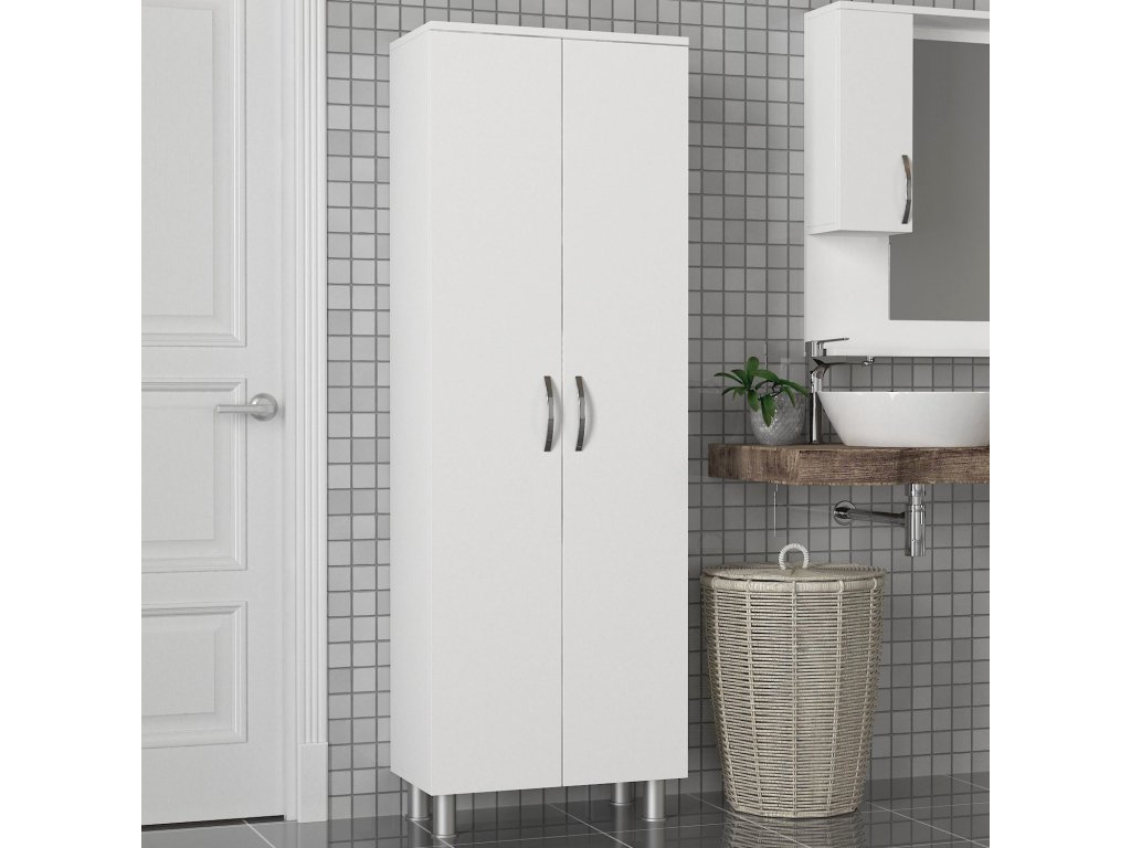 S hrúbkou 18 mm a rozmermi 59,4 cm na šírku, 161,5 cm na výšku a 31,5 cm na hĺbku ponúka táto skrinka dostatok úložného priestoru pre všetky vaše kúpeľňové potreby. Výška nôh 10 cm dodáva konštrukcii nádych modernity a zároveň zaisťuje stabilitu.
