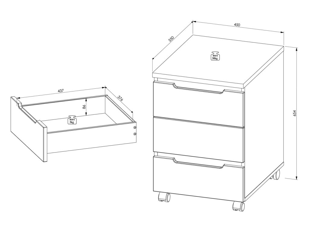 Skrinka je vhodná ku kancelárskym stolo BURGON, je na kolieskach.