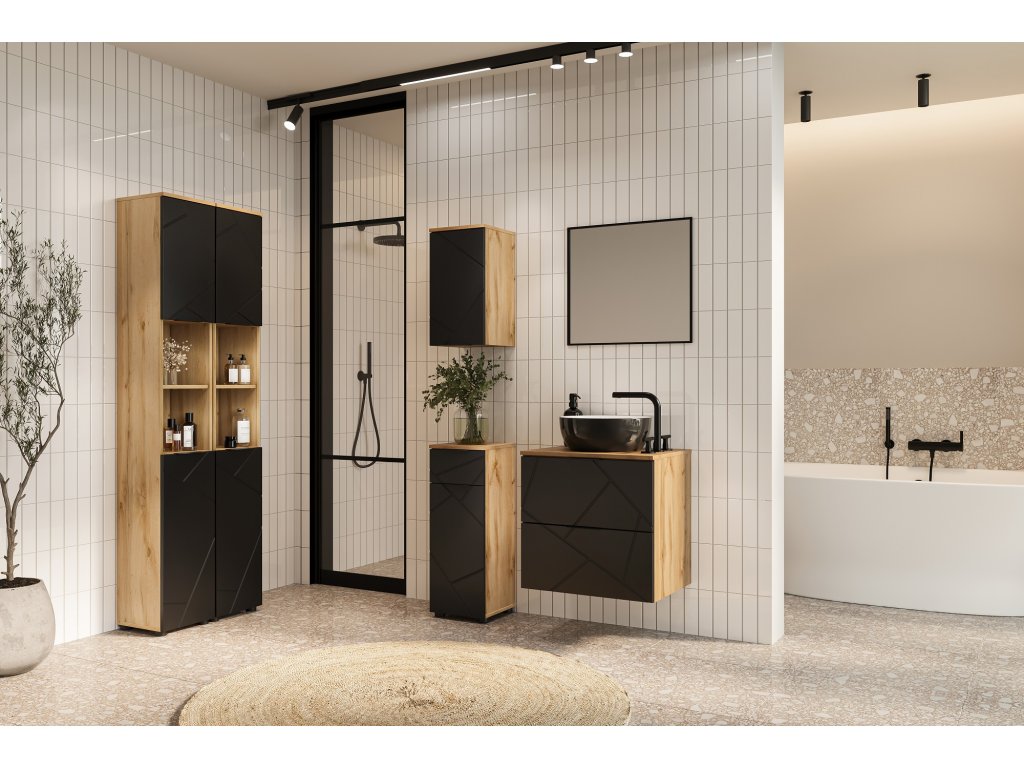 Skrinka do kúpeľne MANDOLA 70, dub Wotan / čierna
