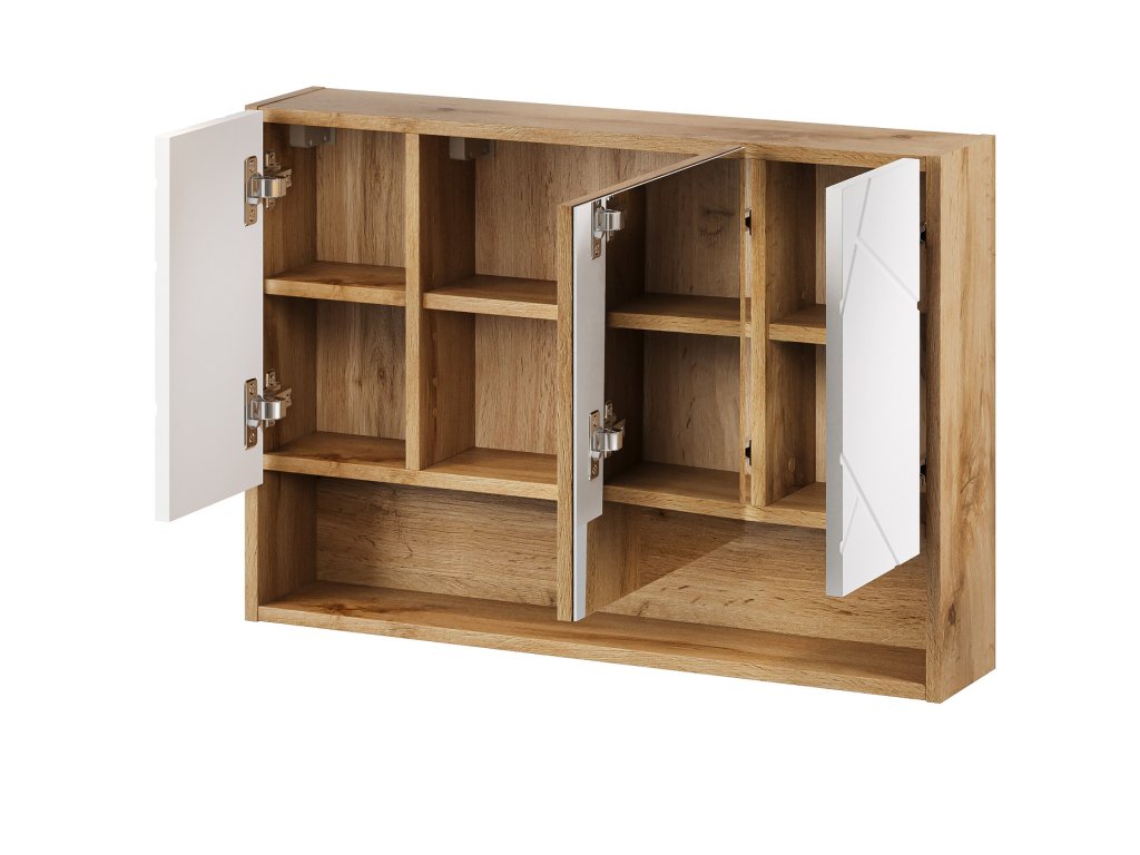 Skrinka do kúpeľne so zrkadlom MANDOLA 58, dub Wotan / biela