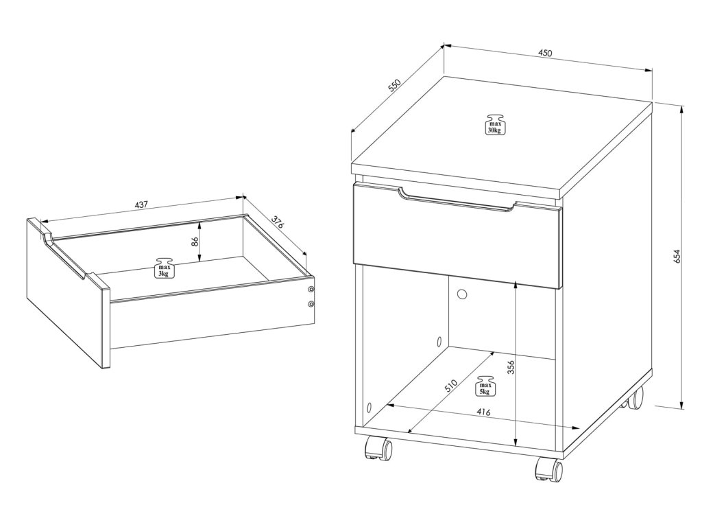 Skrinka je vhodná ku kancelárskym stolo BURGON, je na kolieskach.