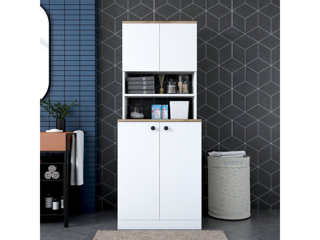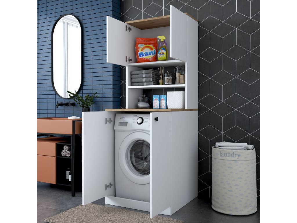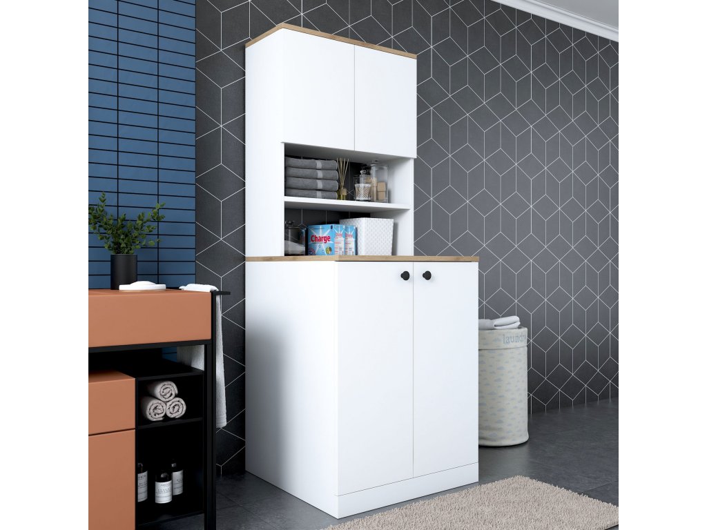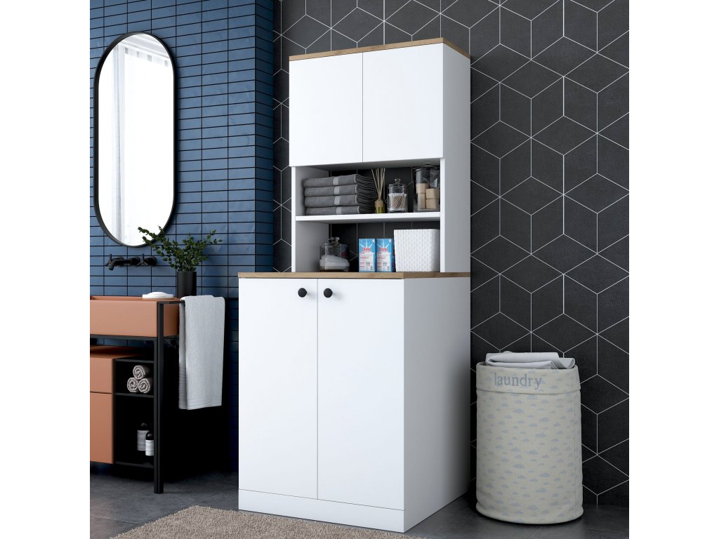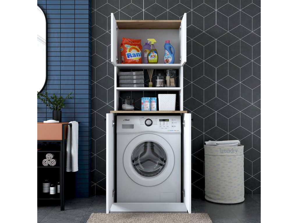 Skrinka nad práčku INDIA je ideálnym doplnkom do modernej kúpeľne, ktorý ponúka praktický úložný priestor a elegantný dizajn. Kombinácia bielej farby a dekoru orecha pridáva kúpeľni sviežosť a štýl, zatiaľ čo premyslené usporiadanie umožňuje efektívne využitie priestoru.