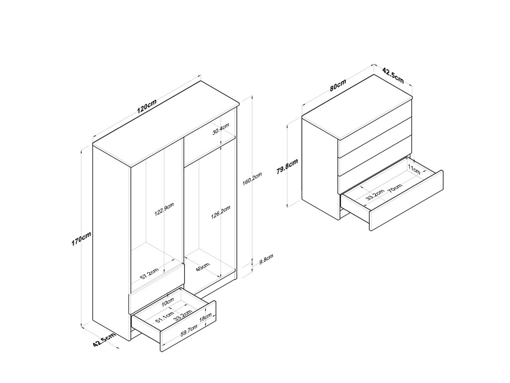| Zostava obsahuje: | šatníková skriňa, šuplíková komoda |