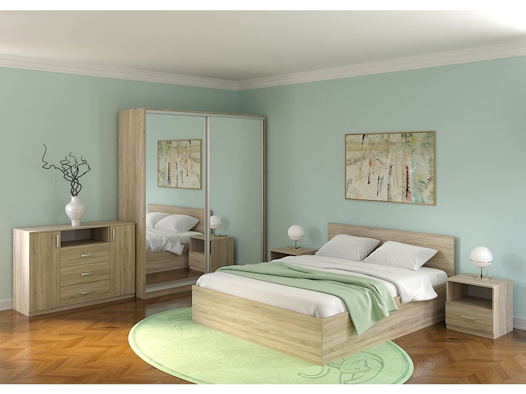 | Zostava obsahuje: | manželská posteľ 160x200 (ŠxVxH) 170x95x205 2x nočný stolík (ŠxVxH): 45x46,5x43 komoda (ŠxVxH): 120x84,5x46 šatníková skriňa (ŠxV6 |