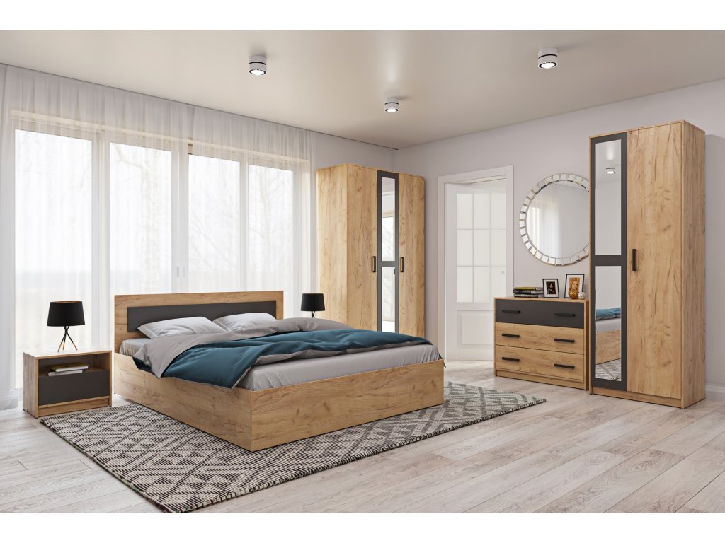 Spálňová zostava VIVIEN, Dub Craft zlatý/grafit