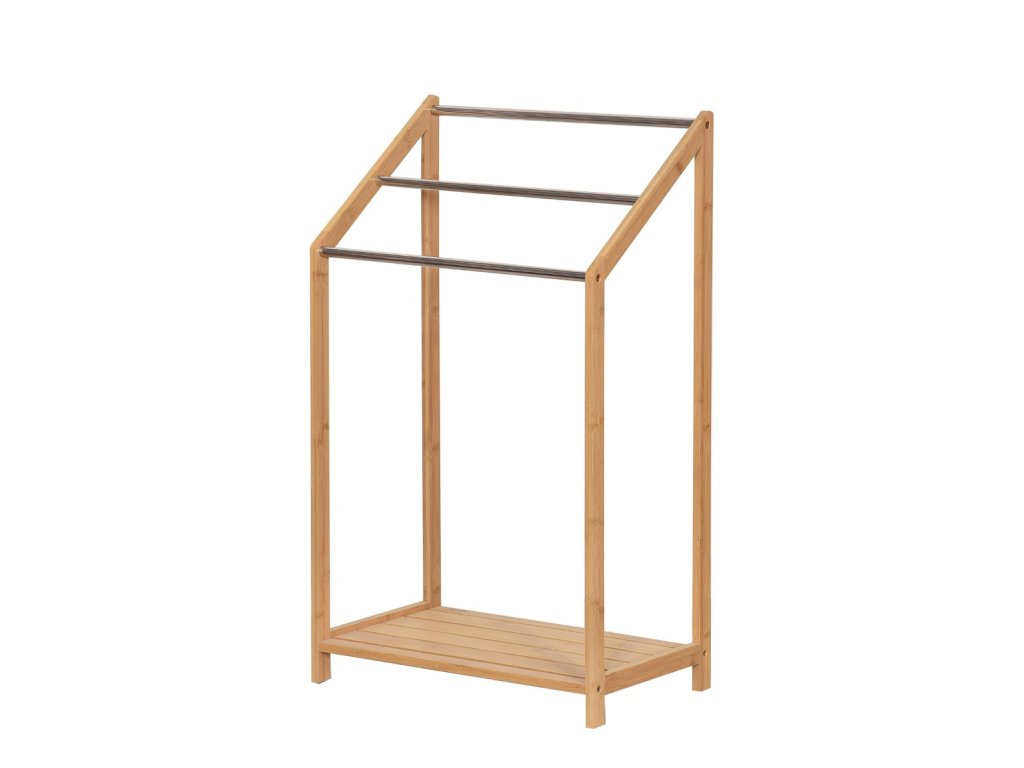 Bambusový stojan SUN bude vkusným a praktickým pomocníkom každej domácnosti. Stojan z prírodného bambusového dreva, ktoré je odolné voči vlhkosti využijete predovšetkým v kúpeľni na odkladanie uterákov či inej bielizne. Zároveň bude skvelý tiež ako doplnok do spálne, šatne či detskej izby na odkladanie oblečenia, ktoré už vám nemusí ležať pohodené na podlahe alebo na posteli. Oceníte tiež praktickú spodnú odkladaciu policu.