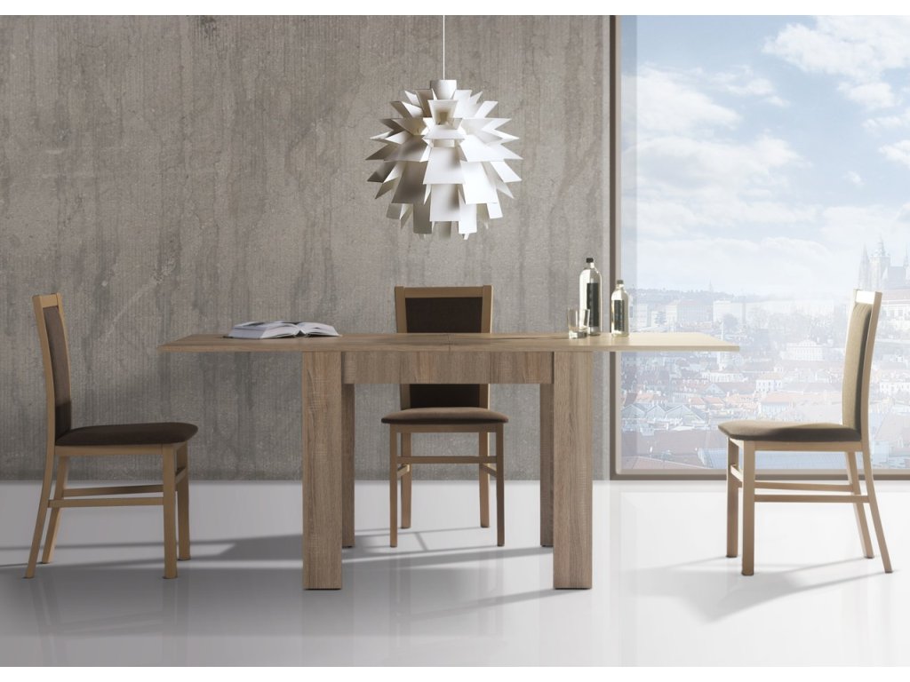Štvorcový jedálenský stôl s rozkladom SATUR 40, sonoma
