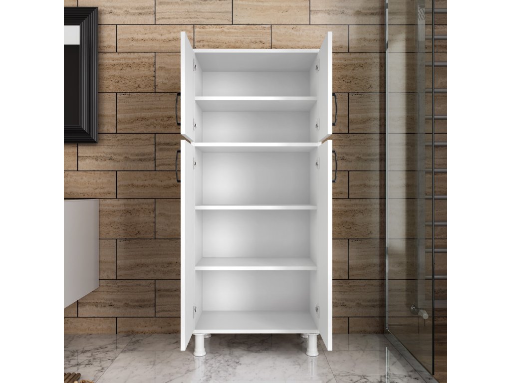 Komoda ARENA je ideálnym riešením pre praktickú organizáciu priestoru v kuchyni alebo kúpeľni. Kombinácia minimalistického škandinávskeho dizajnu a čisto bieleho prevedenia prináša do vášho interiéru ľahkosť, poriadok a eleganciu.