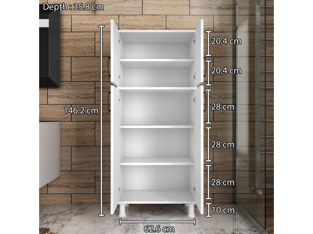 - Rozmery: 146,2 x 62,6 x 35,8 cm – priestranný dizajn pre optimálne využitie úložného priestoru.