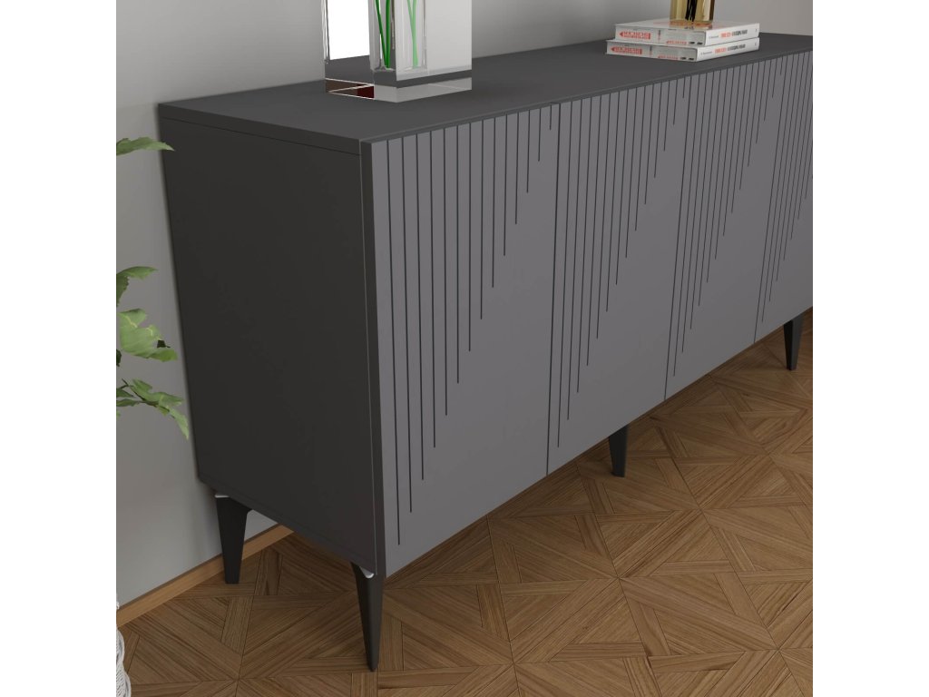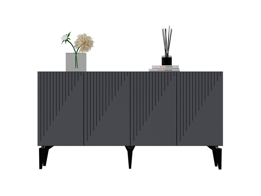 Komoda RING je dokonalým spojením elegancie a funkčnosti, ktoré prinesie do vašej obývačky nádych luxusu. Jej široký dizajn so štyrmi plnými dvierkami ponúka dostatok úložného priestoru pre všetky vaše potreby, či už ide o knihy, dekorácie alebo iné predmety.