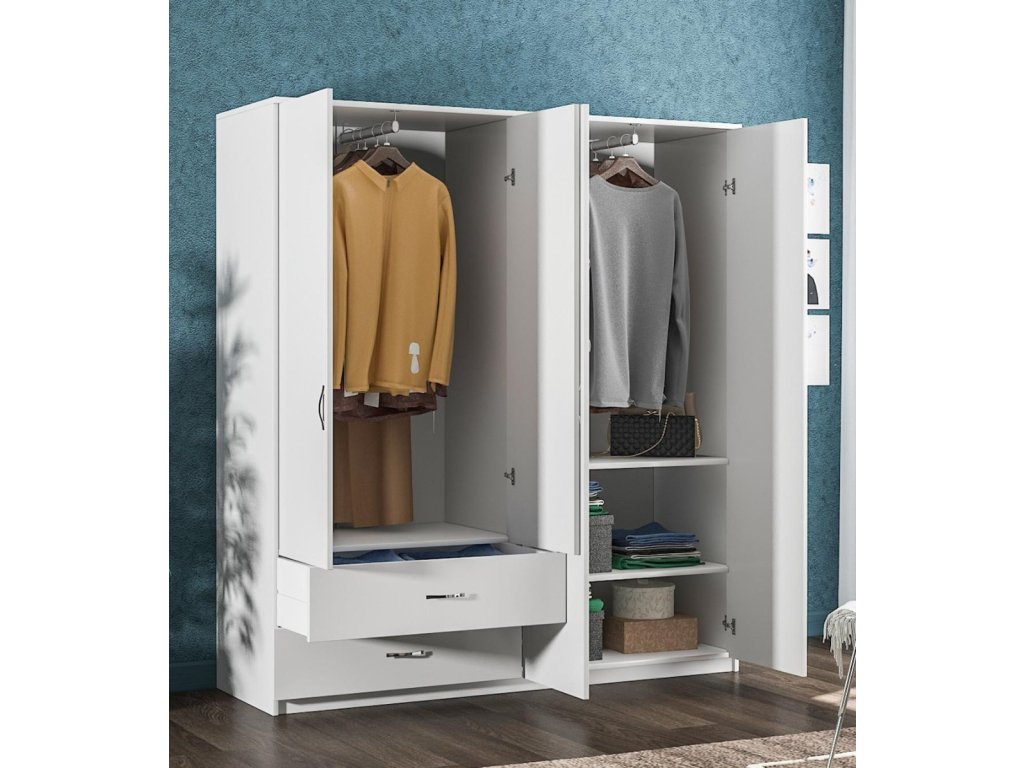 Štvordverová šatníková skriňa BEATRIS, biela
