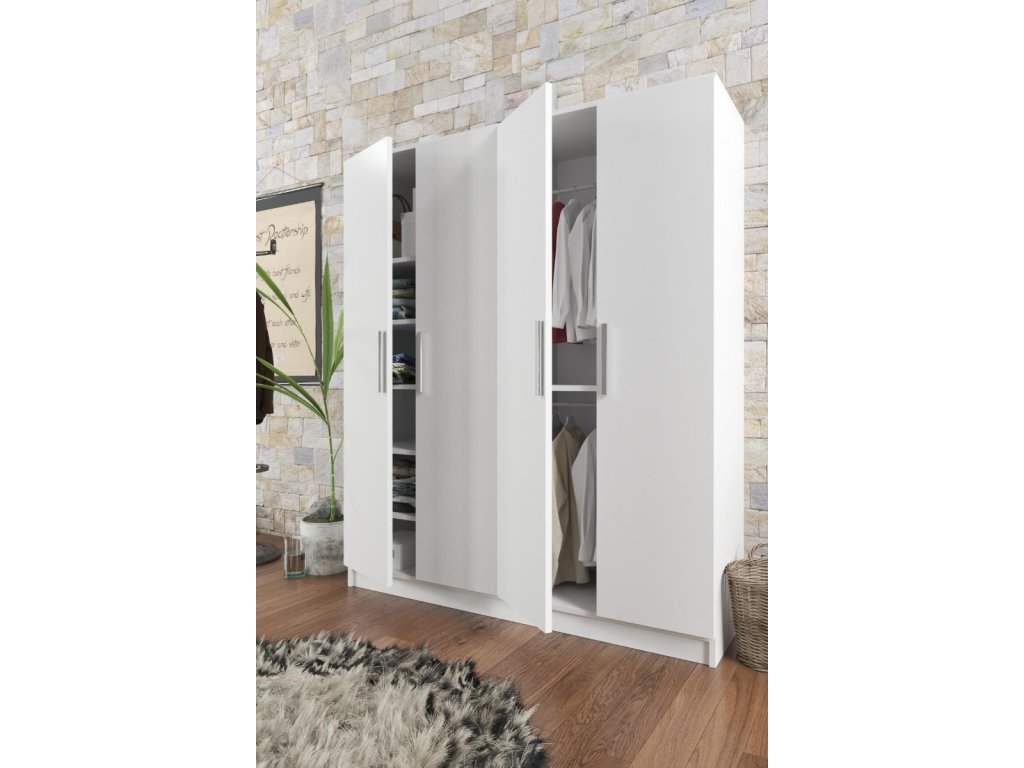 Štvordverová šatníková skriňa ITALIA, biela