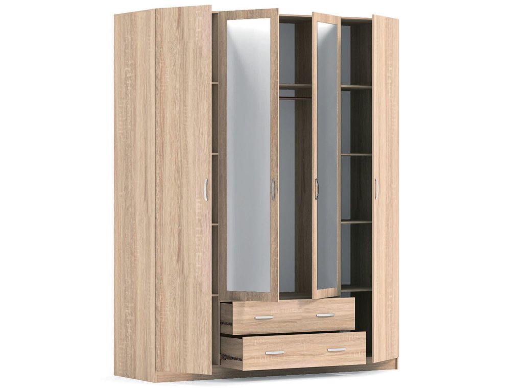 Štvordverová šatníková skriňa so zrkadlom LANDO, dub Livorno